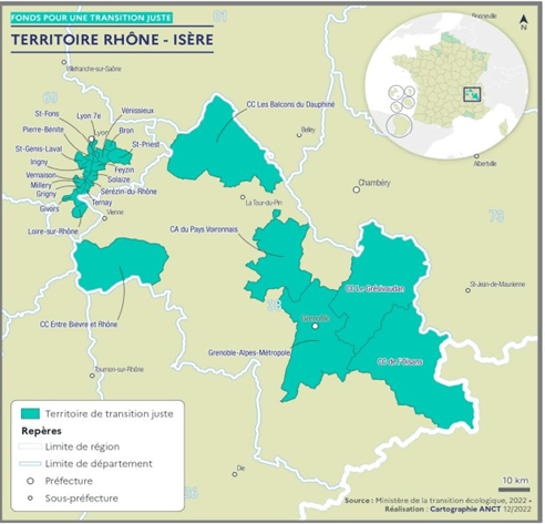 En Auvergne-Rhône-Alpes, les territoires éligibles sont la Vallée de la chimie (autour de Lyon), l’agglomération grenobloise, les communautés de communes Les balcons du Dauphiné et Entre-Bièvre-Rhône.